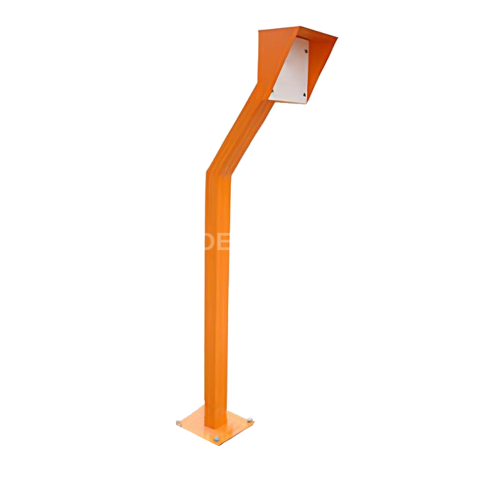 - Стойка выполнена из профильной стальной трубы. - Стойка имеет порошковое полимерное двухслойное покрытие с текстурой «шагрень», цвет оранжевый (RAL 2008) (по специальному заказу возможна окраска в любой цвет RAL). - Стойка имеет наклон средней части 150 град. - Место для крепления считывателя защищено козырьком и имеет диэлектрическую монтажную площадку размером 150х150мм