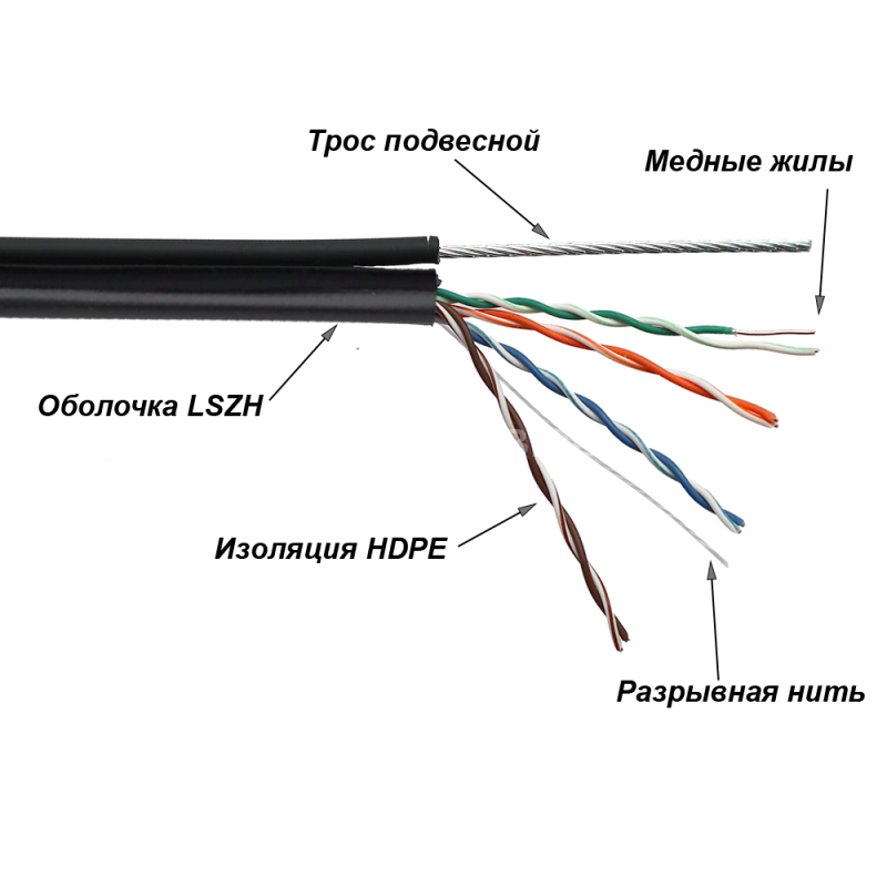 Кабель с тросом предназначен для подвеса на воздушных линиях связи.