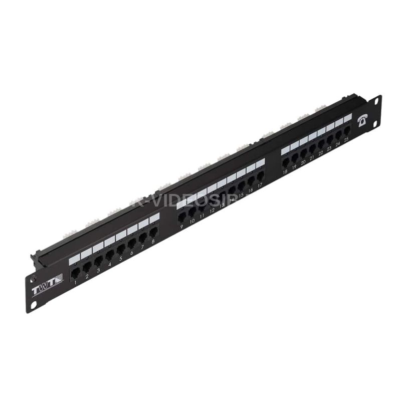Телефонная патч-панель 19' предназначена для коммутации телефонных линий. С внешней стороны патч-панель имеет 25 портов RJ11. С лицевой стороны порты панели имеют цифровую маркировку. Предусмотрены площадки для дополнительной маркировки портов.
