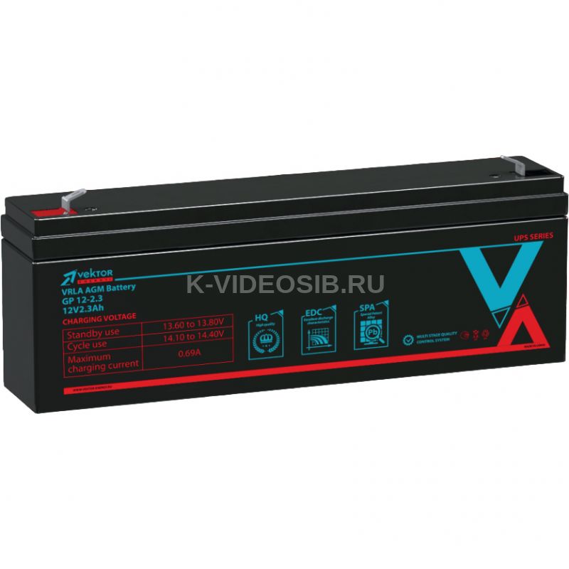 VEKTOR ENERGY GP 12-2,3 - аккумуляторная батарея 12В, ёмкостью 2,3 Ач.