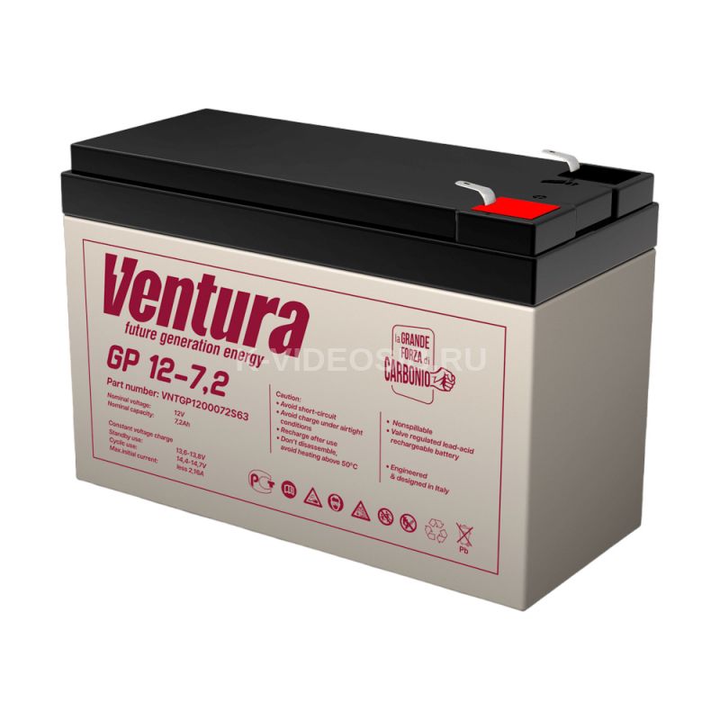 Аккумуляторная батарея Ventura GP 12-7.2. Низкое внутреннее сопротивление и высокая плотность энергии. Для охранно-пожарных систем, фонарей, кассовых аппаратов, СКУД.