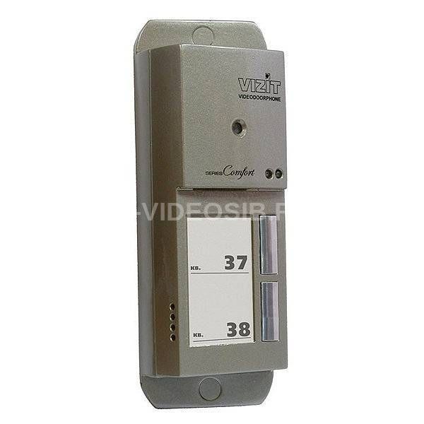 VIZIT БВД-444CP-2-R - комплект блока вызова на 2 абонента для совместной работы с БКМ-444. Встроенная телекамера цветного изображения с функцией "День-ночь" (380 tvl, PAL, 0 Lux / ИК подсветка для телекамеры, объектив 90 градусов). Подсветка кнопок вызова и шильдов. Подставка для поворота блока на 20 градусов. Считыватель RD-3, ключи VIZIT-RF2.1 - 5/10/20 шт. в комплекте.