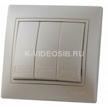 Выключатель 3-кл. СП Мира 10А со вставкой жемчуж./бел. перламутр. LEZARD 701-3030-109