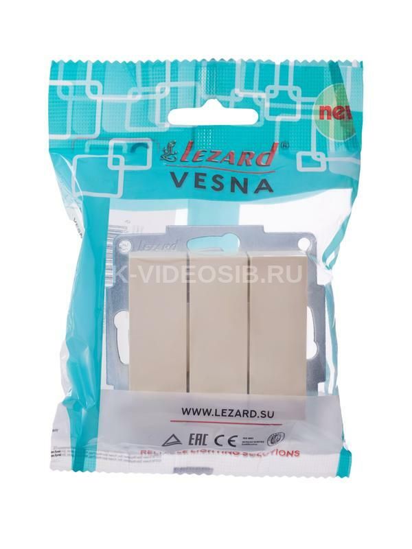 Описание Выключатель 3-кл. СП Vesna механизм крем. LEZARD 742-0388-109