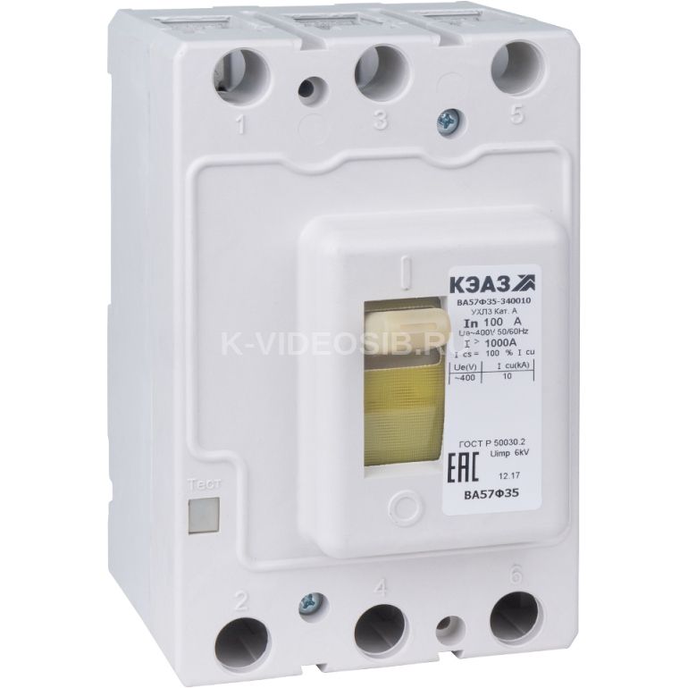Описание Выключатель автоматический 250А 2500Im ВА57Ф35-340010 УХЛ3 400В AC КЭАЗ 109319