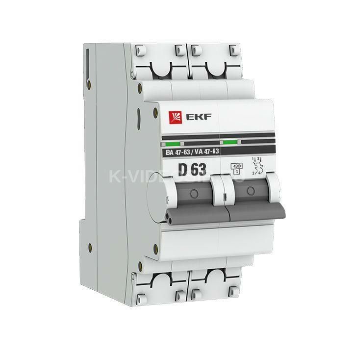 Описание Выключатель автоматический модульный 2п D 63А 4.5кА ВА 47-63 PROxima EKF mcb4763-2-63D-pro