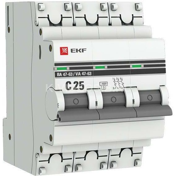 Описание Выключатель автоматический модульный 3п C 25А 4.5кА ВА 47-63 PROxima EKF mcb4763-3-25C-pro