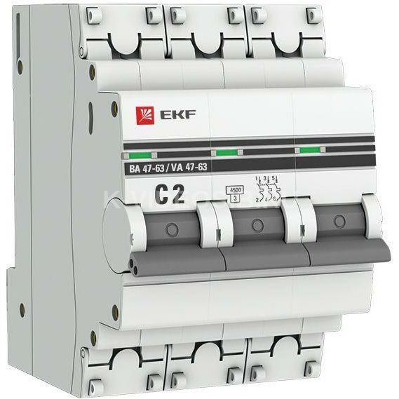 Описание Выключатель автоматический модульный 3п C 2А 4.5кА ВА 47-63 PROxima EKF mcb4763-3-02C-pro