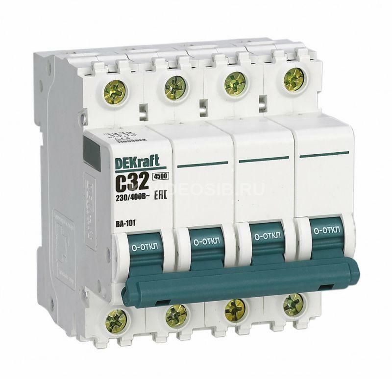 Описание Выключатель автоматический модульный 4п C 32А 4.5кА ВА-101 SchE 11093DEK