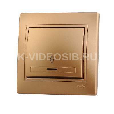 Описание Выключатель проходной 1-кл. СП Мира 10А IP20 с подсветкой со вставкой зол. метал. LEZARD 701-1313-114