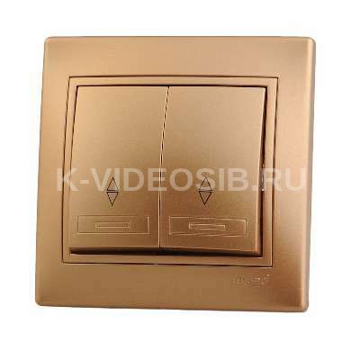 Выключатель проходной 2-кл. СП Мира 10А IP20 со вставкой зол. метал. LEZARD 701-1313-106