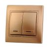 Выключатель 2-кл. СП Мира 10А IP20 с подсветкой со вставкой зол. метал. LEZARD 701-1313-112