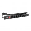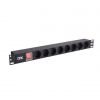 PDU 8 розеток нем. стандарт, с LED выключателем, 1U, шнур 2м вилка нем. стандарт, алюминиевый профиль. Соответствие российским и международным...