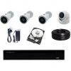 Комплект видеонаблюдения включающий в себя 3 цилиндрических камеры для общего круглосуточного обзора территории дистанцией до 20-25м и 1 купольную...