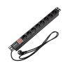 Блок распределения питания для 19" шкафов, горизонтальный, 6 розеток СЕЕ 7/4, 10A, без выклычателя, алюминиевый корпус, шнур 2м, вилка C14, 10...40 °C