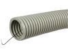 Труба легкая гофрированная с протяжкой, цвет серый ПВХ, внешний диаметр 25 мм, в бухте 50 метров.